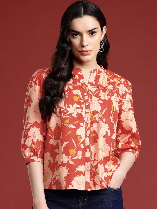 Upgrade your summer wardrobe with the All About You Floral Print Mandarin Collar Puff Sleeves Pure Cotton Shirt Style Top, a perfect blend of comfort and style. Crafted from breathable pure cotton, this top keeps you cool and fresh during warm days, making it one of the best summer cotton tops for women.